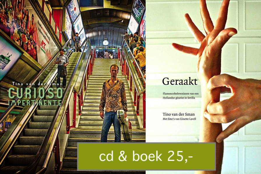 Speciaal voor deze avond verkoopt Tino van der Sman zijn boekje ‘Geraakt’ over zijn flamencobelevenissen in Andalusië plus zijn cd als pakket voor 25 euro. Lees meer over het boekje op deze pagina.